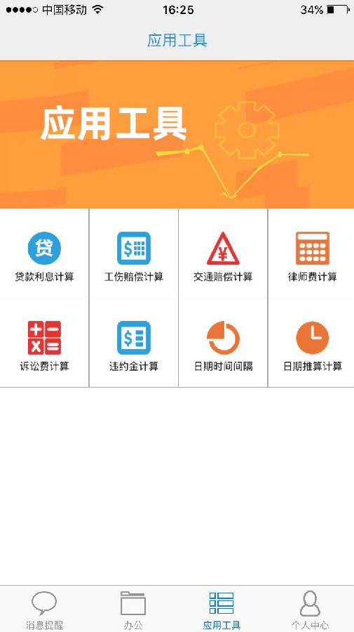 工具:各類司法計算工具,律師費計算、訴訟費計算、違約金計算、工傷賠償計算、交通事故賠償計算應有盡有,方便、快捷、高效。