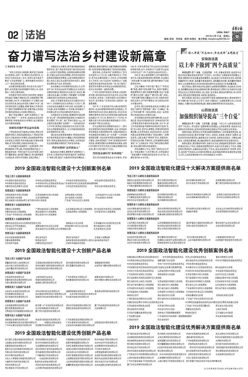 6月12日,2019全國政法智能化建設創新案例征集活動結果揭曉,評審出雪亮工程、智慧法院、智慧檢務、智慧警務、智慧司法十大創新案例、十大解決方案提供商及十大創新產品。